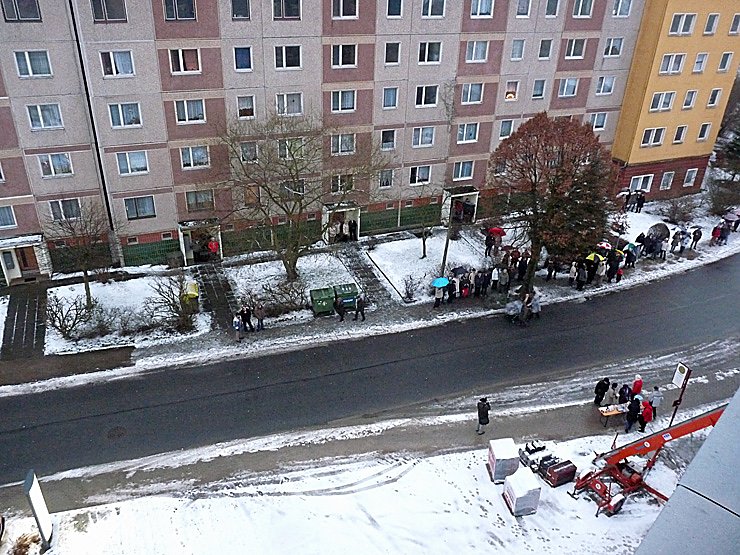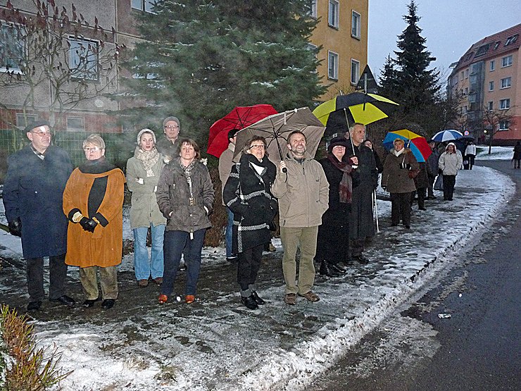 Auch wenn dieses Jahr etwas Schnee lag, bei dem nebligen Wetter kam man nicht so richtig in Weihnachtsstimmung. Das änderte sich aber schlagartig, als vom Turm die ersten Töne erklangen. Auch wenn der Beifall auf dem Turm bei den Bläsern etwas leise ankam, gab es wohl keinen Zuhörer, dem es nicht gefallen hat. Aber das so wenig geklatscht wurde hatte noch einen ganz anderen Grund.